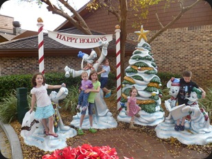 It’s funny to see them in shorts on the “snow covered” Christmas decorations.